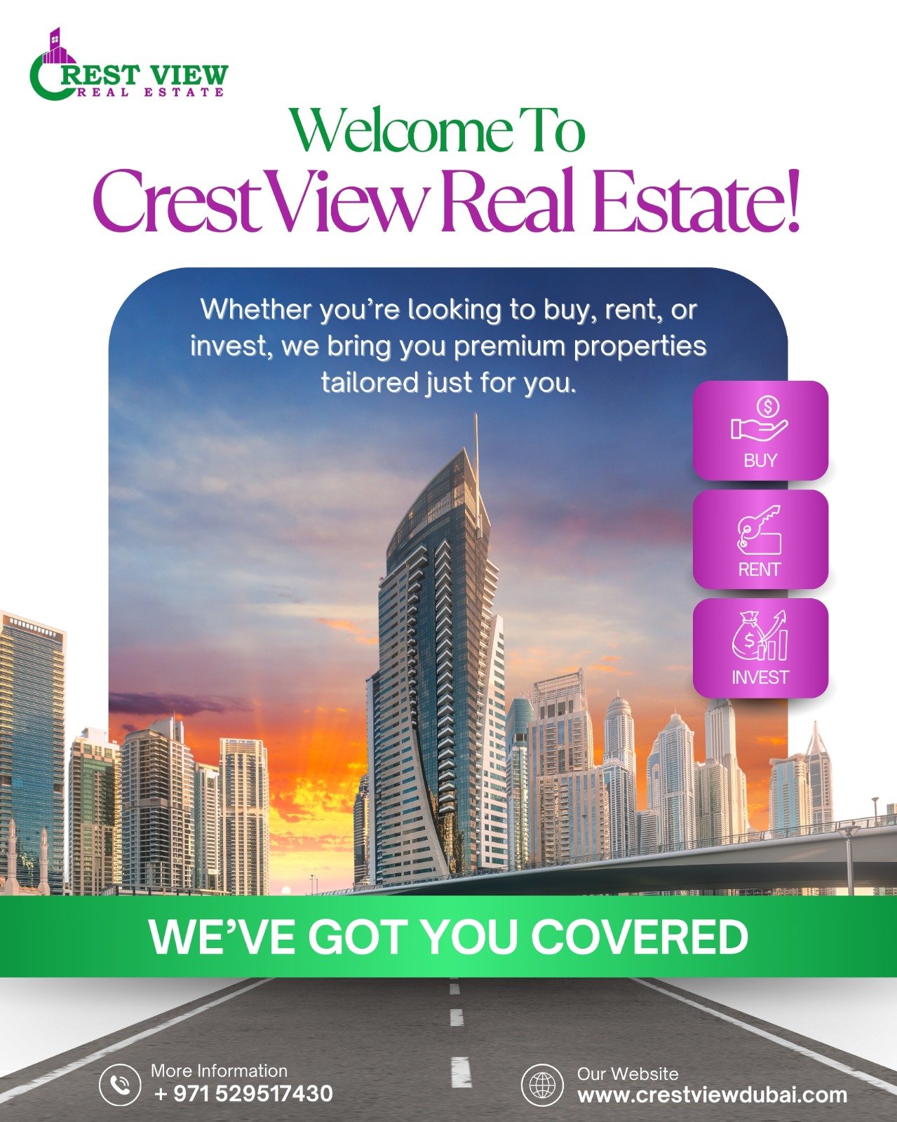 Established in the heart of Dubai, Crest View Properties is dedicated to delivering exceptional service and unmatched expertise in the city’s fast-evolving real estate landscape. Built on a foundation of integrity, transparency, and deep market knowledge, we strive to make every property journey seamless, rewarding, and perfectly tailored to our clients’ needs.